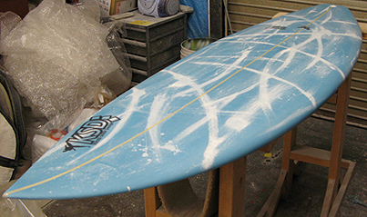 乾燥と修理に約1年かけたボードは修理のわりに軽い。