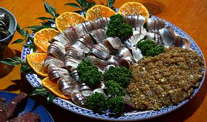 水揚げされたばかりの鯵、うるめ鰯、郷土料理のなめろう。