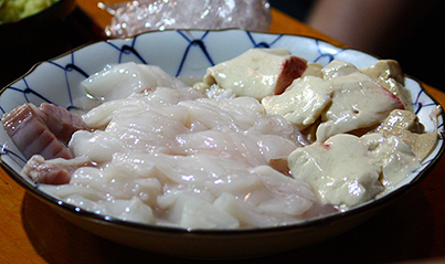 でも書いちゃう。まんぼう刺。肝を醤油に溶いて食す。