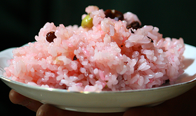 土地で収穫された米で炊かれた最高に美味な赤飯。