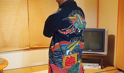 豊漁時に着用する萬祝は大漁祝いの意味。