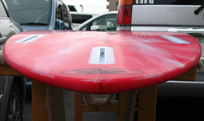 普通のショートボードとラウンドノーズの中間ぐらいのノーズ幅、