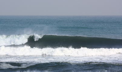 視線の先は潮が多いに形良い掘れた波が崩れている...