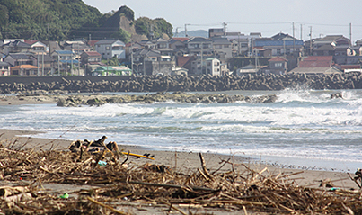 12号に運ばれて来た流木達でバリケード。