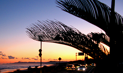 オレンジ色の夕陽が落ちる絶景を見ながらの夕波は格別。