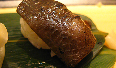 鮪尾筋の炙り 炙る事による固い筋はトロトロに。