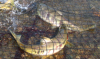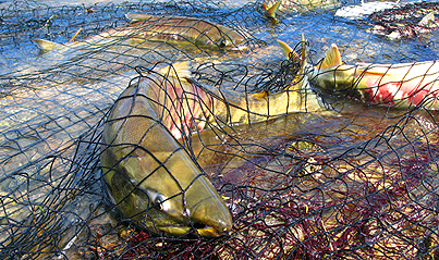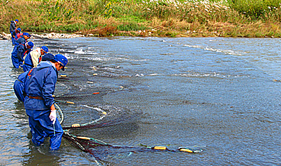 産卵の為に遡上した雌を捕獲して卵を取り出すのだろう。