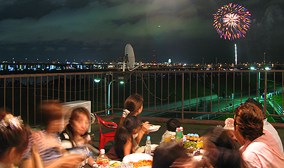 昨夜は、親友ファミリーに招かれ自宅屋上で花火大会