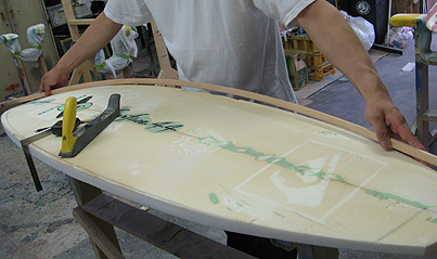 ノーズからテールまで入っていたVeeを現代のボトムコンツァーに整形した結果