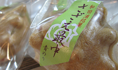 店頭の垂れ幕にも記されてる:さざえ最中。