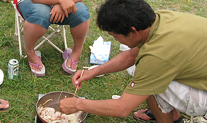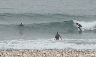 ハラが満たされると眠くなり期待出来ぬ波に4人で昼寝。