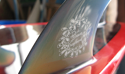 お気に入りのイラストやとびっきりの写真をエポキシのサーフボード板に入れて持ち運ぶ。