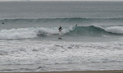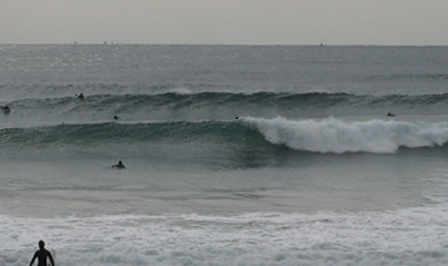 干潮時も沖合にウネリが筋々。