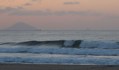 日が昇るとオンショアが強まりウネリは衰弱。