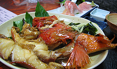 昼から豪勢に煮付けと刺身のセット!