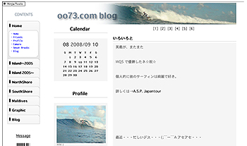 右の日記やコメントの列が上に、カレンダーやその他左列が下に。