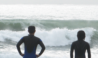 見知らぬ人達。沖に出るタイミングを計っていた。