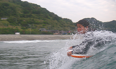 小さめの波は形良く、Wakちゃんは小波狙いで俺の3〜4倍乗っていた。