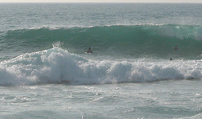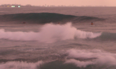 西側は強いオフショアに抑えられサイズダウンです。