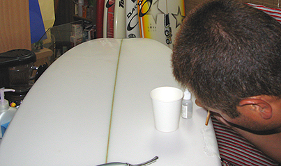 リーフで痛めた板をリペアして