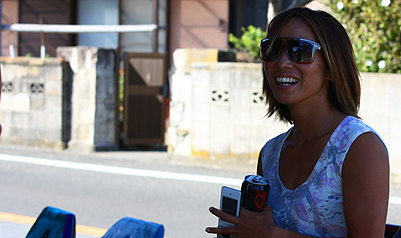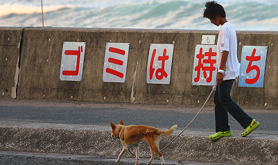 海から上がると先に上がった、Junjunが愛犬リュウを連れて待っていた。