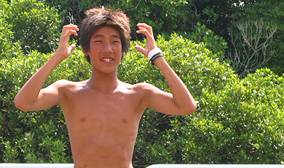 速攻、海へ飛び込むと裸じゃー寒ーい!冷たーい!